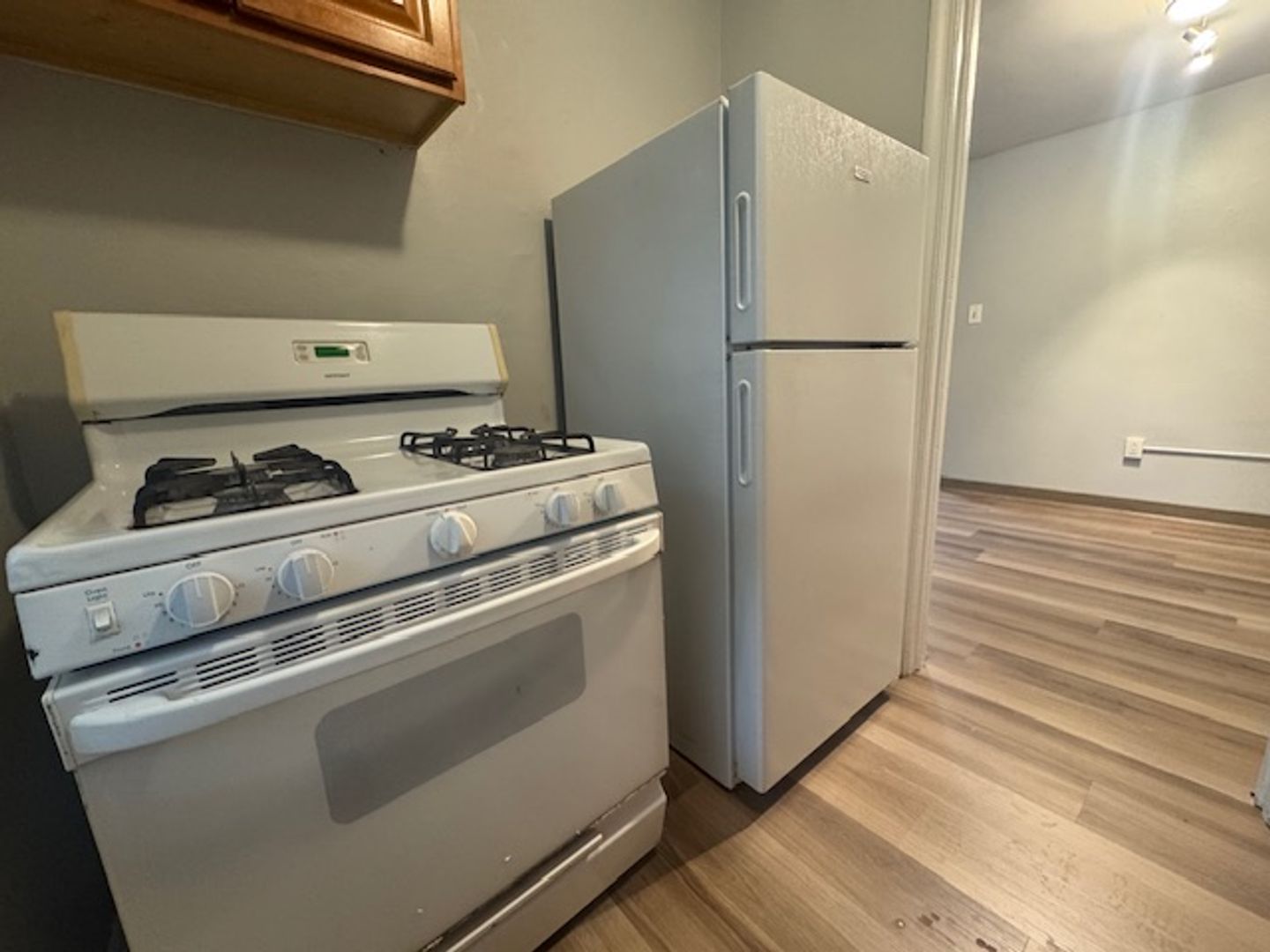 - Equipped kitchen with fridge and gas stove