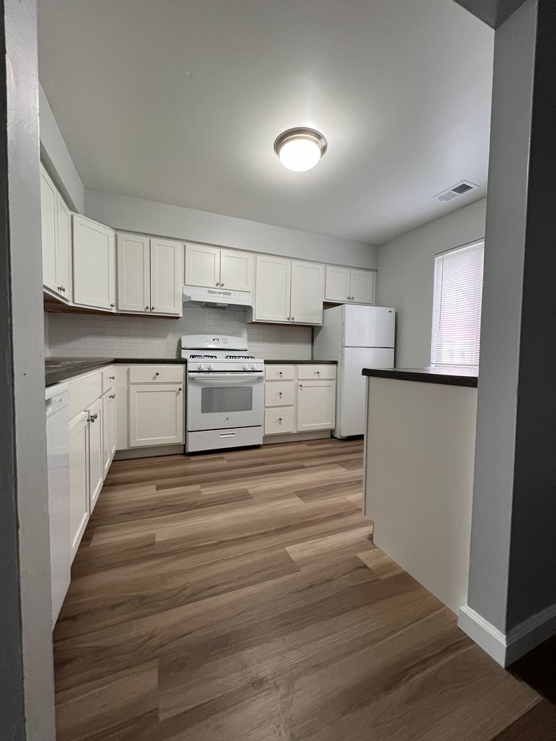 -Updated, equipped kitchen with fridge, gas stove & dishwasher.